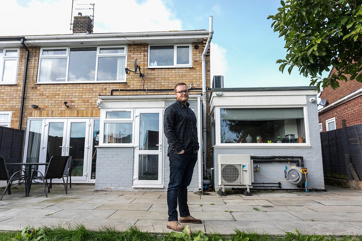 We now have a 4kW Daikin Altherma Hybrid Monobloc system. The heat pump is at the rear of the house, beneath the kitchen window. In the garage we’ve replaced the old boiler with a more efficient one.